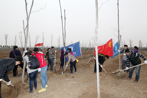 3月12日,海洋研究所团委组织30名职工、研究生开展义务植树活动,我站孙玉娥、王敏晓等同志积极参加活动。