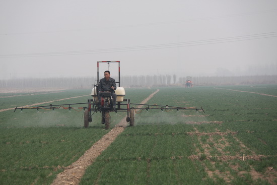 2014年3月17日,“渤海粮仓科技示范工程”项目春季冬小麦现场除草会在南皮乌马营五拨示范区召开。由中国科学院农业资源研究中心提供技术支持,由南皮县农业局植保站进行组织,南皮县神兵植保专业合作社来执行,对“渤海粮仓科技示范工程”南皮县百亩和千亩示范区冬小麦春季草害进行统防统治。此次现场会,起到了统一防治杂草的效果,同时能够达到统一管理,防治均匀,节省人力、物力等作用。农民在现场的观摩学习,为专业合作社管理模式的示范推广起到了积极作用,为下一步其它种植合作社的示范推广起到了推动作用。来自中国科学院农业资源研究中心、河北省南皮县政府、河北省沧州植保站、南皮县农业局以及乌马营镇东五拨、西五拨、前五拨等附近村镇的农民近100人参加了现场会。