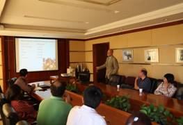 Zbigniew W.Kundzewicz 院士一直从事气候变化对水资源的影响研究 ,曾任IPCC报告第四章和欧洲分报告的总负责人、德国洪堡学者,现任IPCC 第5次报告气候变化与水资源章节的评估专家。Zbigniew W.Kundzewicz院士介绍了目前国际上有关气候变化对水资源的影响、适应与脆弱性研究的进展,重点讨论了气候变化与洪水的风险、干旱区水足迹及适应技术等。交流期间,阿克苏站汇报了在西北干旱生态脆弱区气候变化适应技术研究上的最新进展。双方结合中德《塔里木河绿洲可持续管理》项目(简称SuMaRiO项目)的关键科学问题,围绕气候变化对冰川、积雪、径流形成的影响机理、关键控制因素、风险评估技术等,进行了热烈讨论,并达成了一系列合作研究领域和方向。