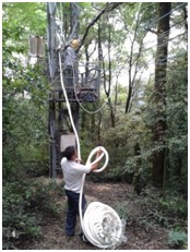 为促进中国生态系统观测研究网络野外台站间的科研交流,增加野外观测项目,中国科学院地理科学与资源研究所生态系统网络观测与模拟重点实验室王绍强课题组一行四人(王绍强、陈曼、陈蝶聪、于泉洲)于2014年3月20-4月5日,在中国科学院鼎湖山森林生态系统定位研究站五棵松通量塔开展自动多角度光谱仪观测系统AMSPEC的安装调试。在鼎湖山站孟泽、莫定升、向传银等的大力协助下,进行了实地考察,协助进行零配件的购买、塔上仪器支架的设计以及塔上配电箱的组装等前期准备工作,使仪器顺利安装并初步调试成功。在监测实施的2年内,我站人员将积极配合做好电源系统和仪器系统的维护工作,每月检查云台的数据线及光纤是否磨损,配电箱内是否清洁干燥,散热风扇是否工作等。并定期监控AMSPEC系统运行状况和数据质量,目前还要帮助解决数据的拷贝传输问题。