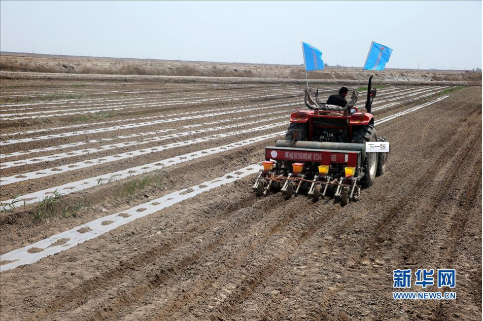 5月8日,农民驾驶自动播种机在山东省无棣县赛尔万亩示范区播种玉米。这款机器是由中国科学院禹城综合试验站的专利技术武装起来的补水式玉米播种机。可以把种子、水和改良土壤的肥料一起均匀撒播,提高了生产效率。