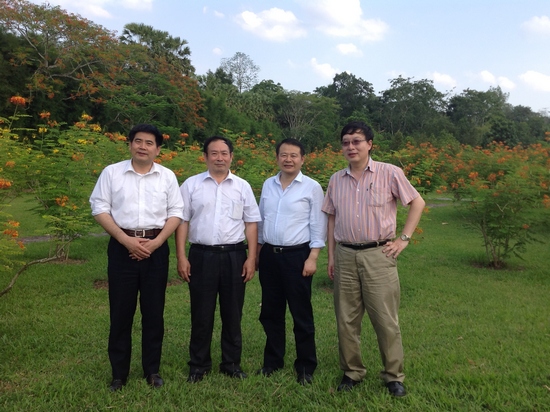 国家天文台严俊台长(右2)、郝晋新副台长(右1)、韩金林研究员(左1)在版纳植物园合影