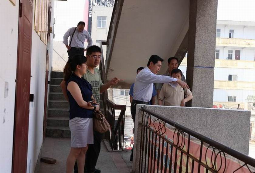图一 王蕾处长(左一)查看商丘站实验楼修购项目现场