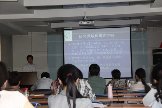 李发东研究员的报告题目为“引黄灌溉对区域水环境的影响”。引黄灌区在全球的施肥量和灌溉面积比均在前列,长期高肥、灌溉条件下势必会对整个生态系统造成影响。李发东研究员利用稳定同位素的方法,通过点与面上试验的结合,量化了水体中硝酸盐污染的来源。作为中科院禹城试验站副站长,李发东研究员在报告中还详细介绍了中国科学院禹城综合试验站的定位及研究特点,并欢迎广大师生到禹城站工作和学习。