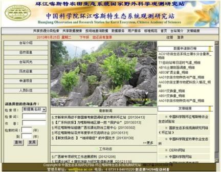 该平台网站是环江站面向社会科研单位、大专院校研究团队,提供喀斯特农田生态系统长期定位监测数据、试验样地设施、室内理化分析和野外观测仪器资源等信息服务的互联网络平台。该网站创建于2006年,运行近七年,因维护网站的服务器老化,近期对服务器进行了更换并对“环江站科技资源共享平台网站”进行迁移。迁移后的网站面向全社会提供服务,可通过http://data.ecokarst.isa.ac.cn进行访问。