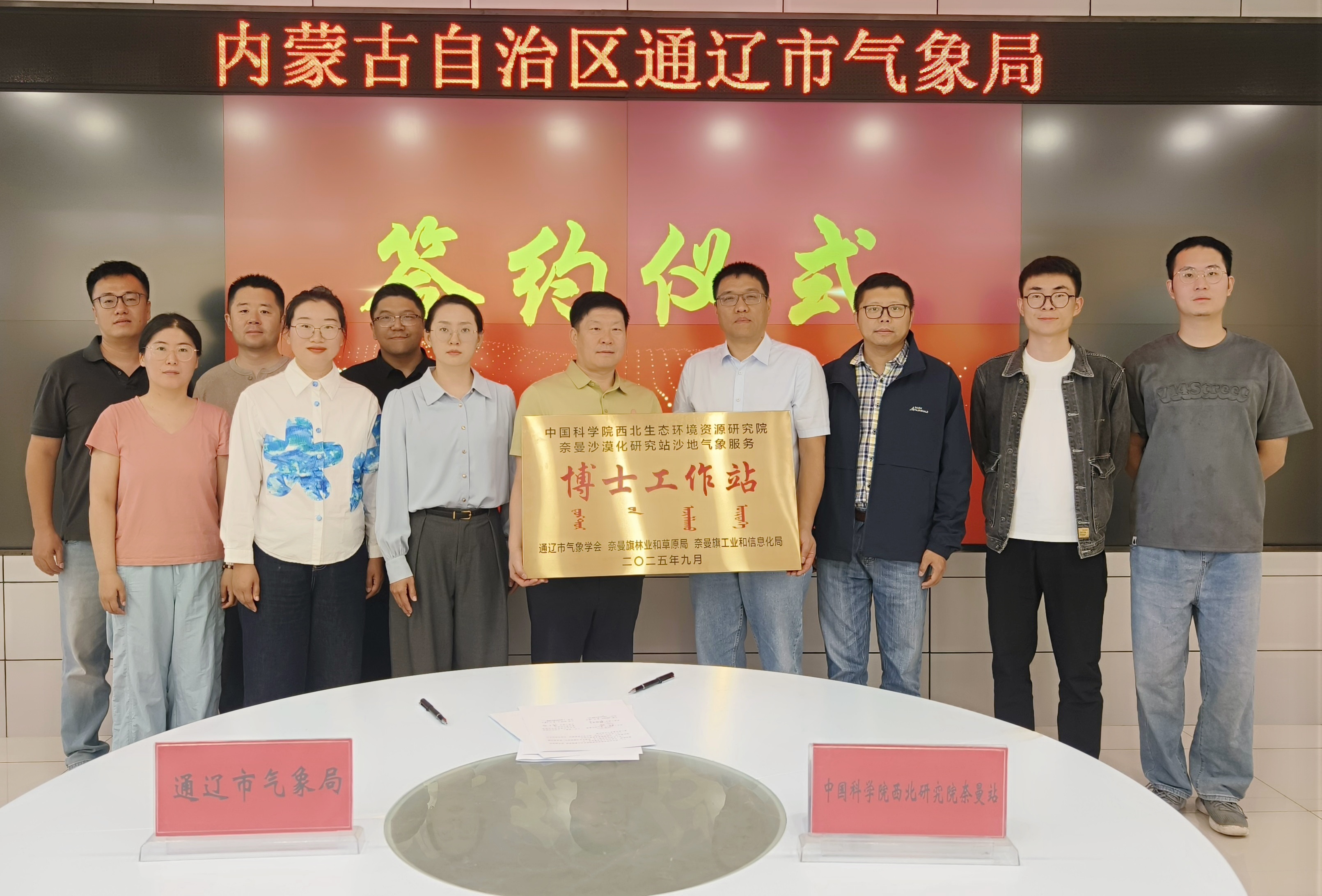 中国科学院西北生态环境资源研究院奈曼沙漠化研究站与通辽市气象局签署框架合作协议,达成共建沙漠化监测与评估体系,共享优质数据资源,联办学术研讨会和培训活动,合作发表学术论文,观测设施计量检定,设备维护保障等多项合作机制。