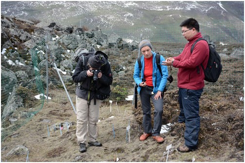 在贡嘎山站工作人员的陪同下,Harald Pauli博士和Andrea Lamprecht前往中国科学院贡嘎山高山生态系统观测试验站对贡嘎山雅家埂和海螺沟两地进行实地考察,帮助挑选符合GLORIA标准的研究样地,并进行了技术指导。双方还就进一步合作开展高山生态系统对气候变化的响应研究制定了初步计划。