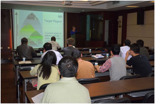 在王根绪研究员的陪同下,Harald Pauli博士和Andrea Lamprecht参观了成都山地所,并分别作了题为“Features of alpine plant life and perceptions from observation studies of alpine plant diversity”和“The Multi-Summit Approach, GLORIA's basic approach”的学术报告。在报告中,Harald Pauli博士介绍了开展全球高山生态环境观测研究计划的目的、意义和已取得的重要进展,Andrea Lamprecht则对GLORIA所采用的野外调查方法——“多峰调查法”以及一些技术规范进行了详细介绍。