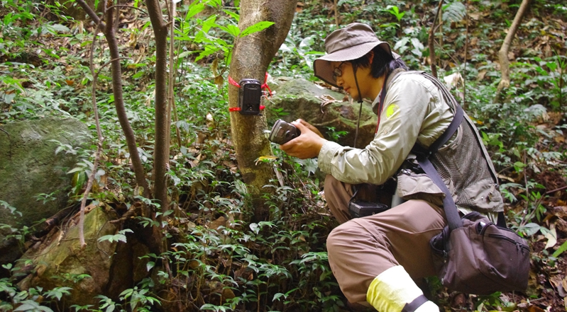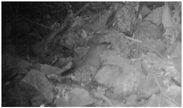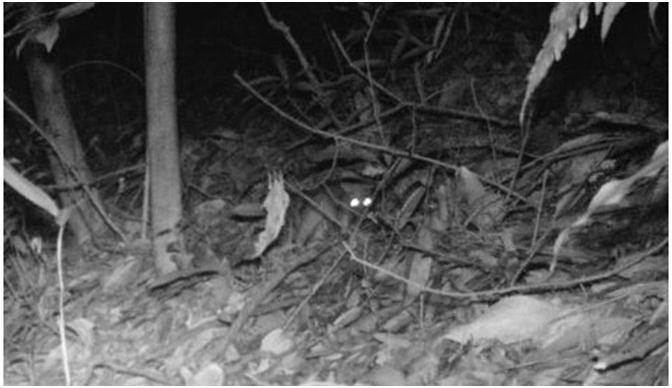 为调查浙江天童国家站20公顷大样地内的野生动物情况,2014年10月初,在大样地16、17、18样方位置布设红外触发相机4台进行预实验。两昼夜的布设,有3台相机拍摄到了野生动物,其中一台可准确辨认为果子狸Paguma larvata(又名花面狸),另有一台两次拍摄到野生动物,可辨认为小型食肉动物,但距离较远,不能确定具体种类,疑似果子狸。