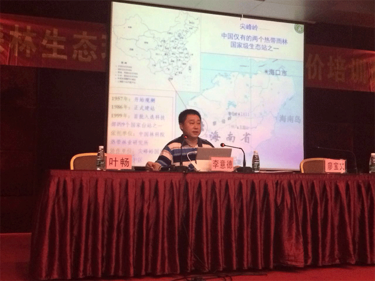 尖峰岭国家级森林生态站站长李意德研究员为培训班进行主讲。结合我国退耕还林工程和天然林保护工程的实际情况,本培训班的主题为森林生态系统长期监测与生态服务功能评估技术和方法。讲课内容包括五个部分:一是森林生态系统长期监测的基本概念、目的和意义;二是以植被、植物区系、植物群落和植物多样性为主的生物资源监测技术和方法;三是以森林调节小气候、森林涵养水源和保持水土、森林净化大气环境、森林固碳释氧功能等生态功能为主的监测技术和方法;四是森林生态系统服务功能的评估技术方法;五是科研监测资料的整理和分析总结、技术资料存档及其相关的技术要求。在培训班上,还向各位学员学习介绍了海南尖峰岭国家级生态系统科学观测研究站的基本情况、科研监测设备设施工程建设概况和已取得的科研监测成果。另外国家林业局海南东寨港红树林湿地生态系统定位研究站站长廖宝文研究员也在培训班上向学员介绍了红树林生态系统的基本情况和该定位研究站的研究设施、科研监测主要内容和取得的监测成果。