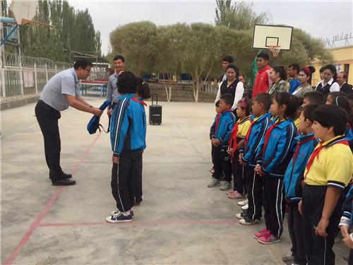 9月25日,本次科普活动移师民丰县安迪尔乡。中科院新疆生地所副所长、新疆植物学会理事长张元明研究员、自治区科协“访惠聚”驻民丰县安迪尔乡总领队兼开西木库勒村工作队队长谢国政和中科院新疆生地所所长助理、科研处处长、新疆科学探险协会理事长刘文江研究员来到民丰县安迪尔乡小学,和孩子们一起参加了周一的升旗仪式,并为孩子们捐赠了书包、铅笔盒、本子、笔及乒乓球拍等文具和体育用品。中科院新疆生地所的研究生林亚军为孩子们做了一场题为《神奇的植物》的科普报告。林亚军用各种手势尽可能让科普课堂生动起来,那些操着流利汉语的小学生,非常兴奋,提着各种问题,并积极回答老师的提问。
