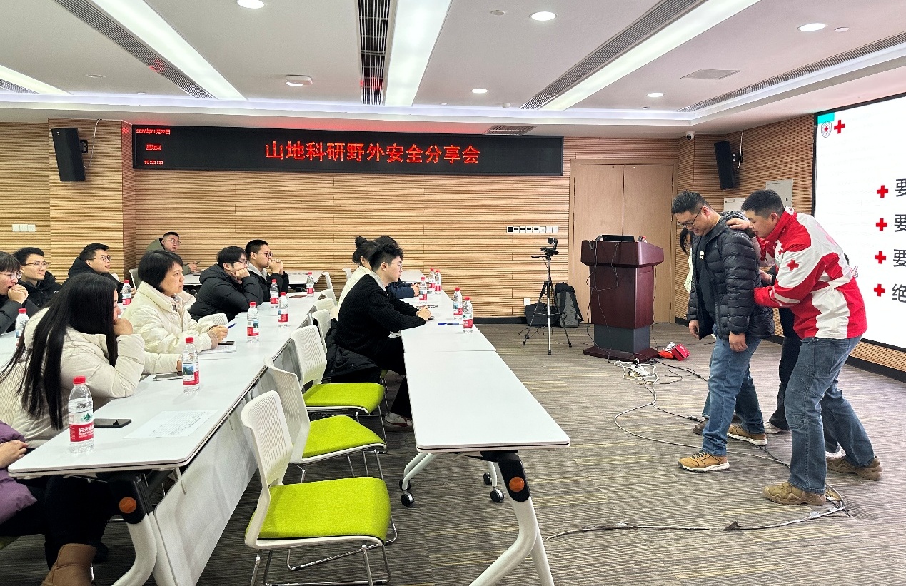 为提升科研人员野外安全防护能力,1月22日上午,成都山地所研究生部、贡嘎山站、山地环境研究中心联合举办了“山地科研野外安全”专题分享会,邀请四川省红十字会救援部负责人刘帆分享野外安全防护知识。70余名师生及科研骨干积极参与。